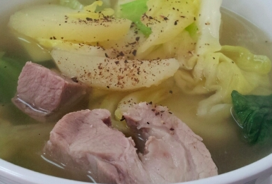 お肉と野菜を煮込んだあっさり塩味のスープのです。